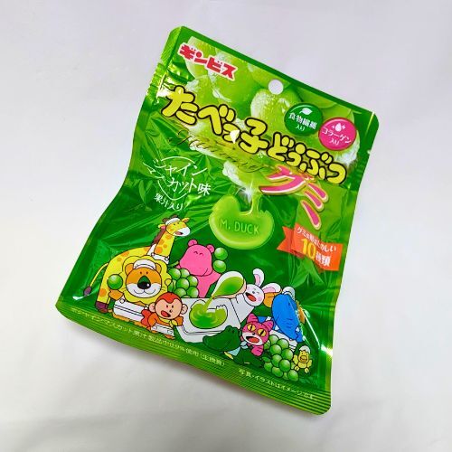 「たべっ子どうぶつグミ シャインマスカット味」 の感想レビュー。セブンイレブンで買いました。税込み216円