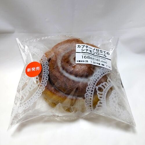 セブンイレブンで購入。「カプチーノ仕立てのシナモンロール」 168円(税込181.44円)