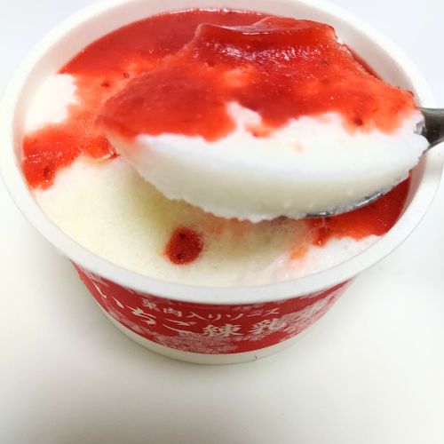 肝心な味としては ちょっと甘すぎかな?と感じはしましたが たっぷりの苺果実と練乳がウキウキ嬉しい。